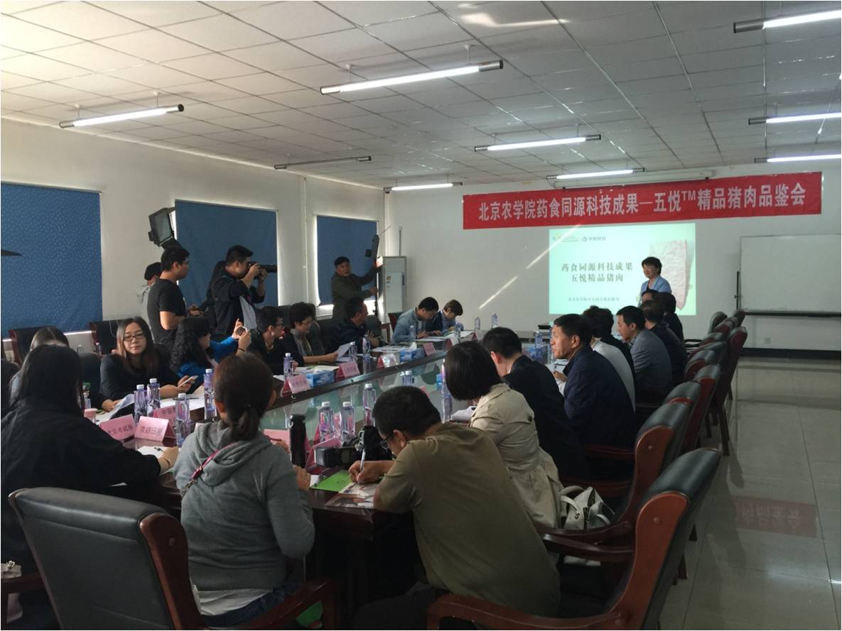 10月16日,由北京农学院宣传部主办,中关村开放实验室和中悦民安(北京)科技发展有限公司承办的北京农学院科技成果——五悦™精品猪肉品鉴会在北京农学院大学科技园隆重举行。商务部、法国农业部养猪研究院、中国种猪信息网、猪业科学杂志、国家安全农产品产业技术创新战略联盟、主流媒体人民日报、光明日报、科技日报、农民日报、北京日报、中国科学报、新京报、北京青年报、北京晚报、劳动午报、京郊日报、现代教育报、北京晨报、京华时报、人民网、中央电视台科教频道、中国教育电视台、北京电视台出席了会议。