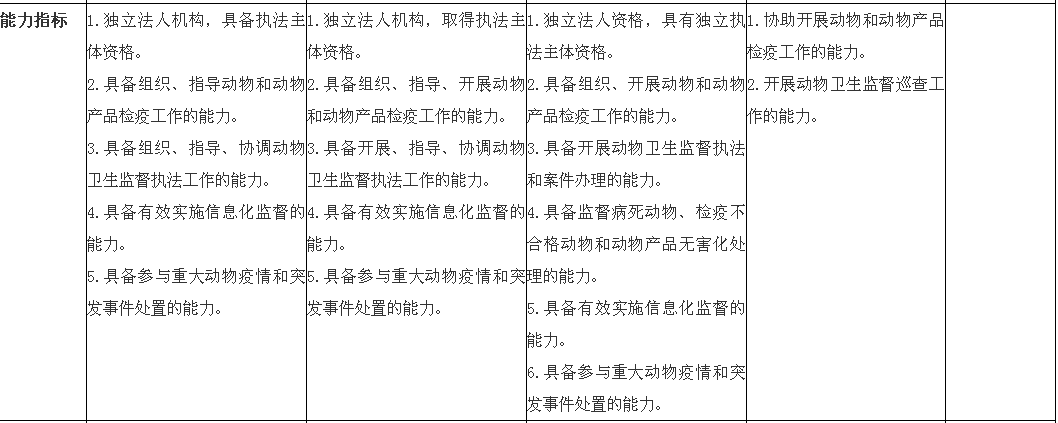 各级动物卫生监督机构核心能力评价指标