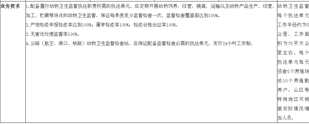 2.构建基层综合执法体系。大力推行基层综合执法,全面履行畜牧兽医部门法定职责。重点以县级动物卫生监督机构为依托,整合畜牧兽医执法队伍,统一行使动物防疫检疫、种畜禽、饲料、兽药、畜禽屠宰、生鲜乳、兽医实验室生物安全、动物诊疗机构和兽医从业人员监督执法等职责,逐步实现执法人员统一管理,执法力量统一调度。明确细化综合执法机构职能,完善执法委托手续,确保执法行为合法有效。充实综合执法人员力量,提高执法装备水平,加强防疫检疫执法、应急处置等职业人员的生物安全防护,推动建立条件能力与执法任务相匹配的保障机制。