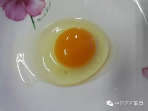 你能看出来吗?对照组颜色浅,稀蛋白像水,一打到盘子上就迅速扩大了,而且浓蛋白也稀,导致边界不清,蛋黄膜薄,张力不够,蛋黄平铺下来,高度低。中药组的情况与对照组相比有很大变化!