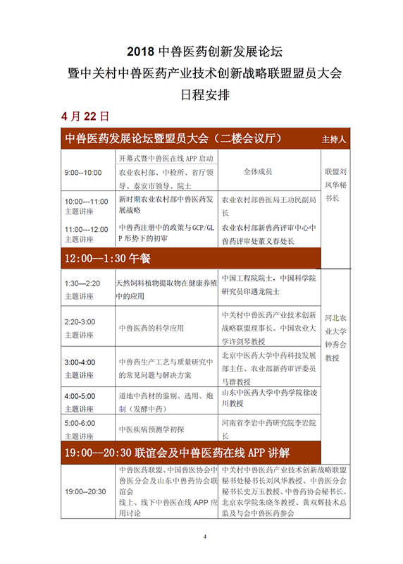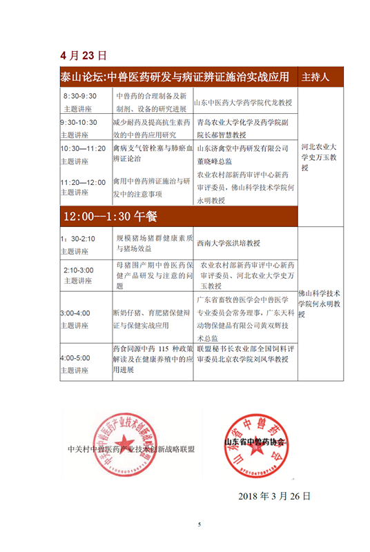本次论坛将集中展示以中兽药产业创新发展为主线,集上、中游中药原料、新设备、新工艺、新中兽药以及下游规模化绿色养殖企业及生态畜产品的各类成果;同期设立博览会及供需洽谈会、新产品发布会、生态畜产品品尝会等。四月下旬五岳独尊的泰山,百花争艳、风景秀丽。让我们满怀期待相聚泰山会堂,以创新发展中兽医药事业为引擎,泰山论坛上诠释中兽医药为促进绿色畜牧业健康发展和转型升级保驾护航!