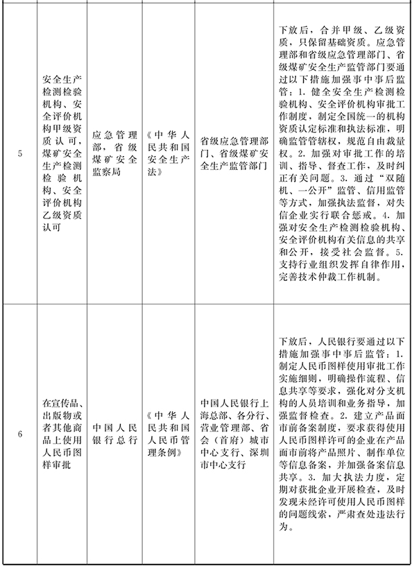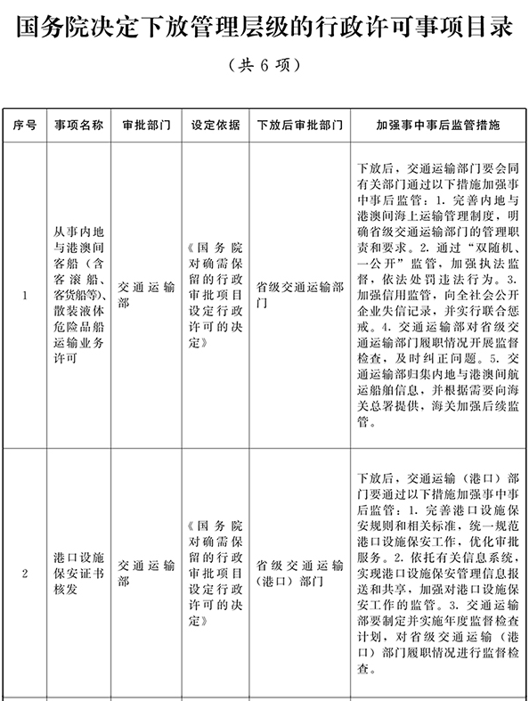 2.国务院决定下放管理层级的行政许可事项目录(共6项)
