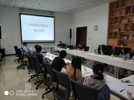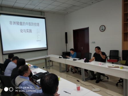 2019年5月10日中关村中兽医药产业技术创新战略联盟秘书处组织联盟的部分专家在北京农学院科技综合楼C106会议室召开非洲猪瘟中兽医辩证理论与防控实践的座谈会。